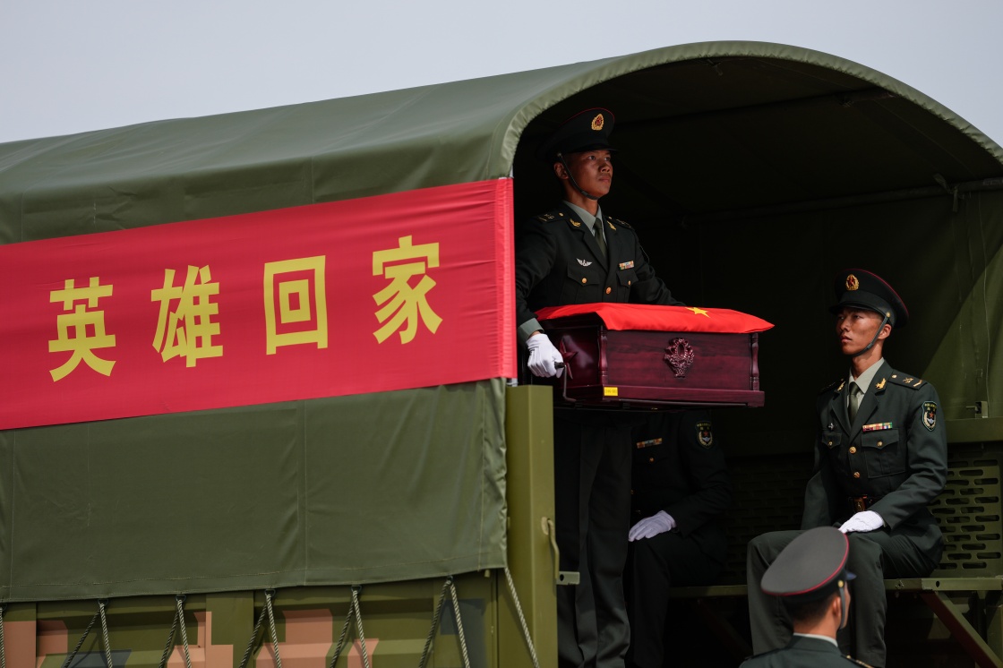9月12日,第十二批在韓中國人民志愿軍烈士遺骸回國。這是志愿軍烈士遺骸抵達沈陽抗美援朝烈士陵園。新華社記者 楊青 攝