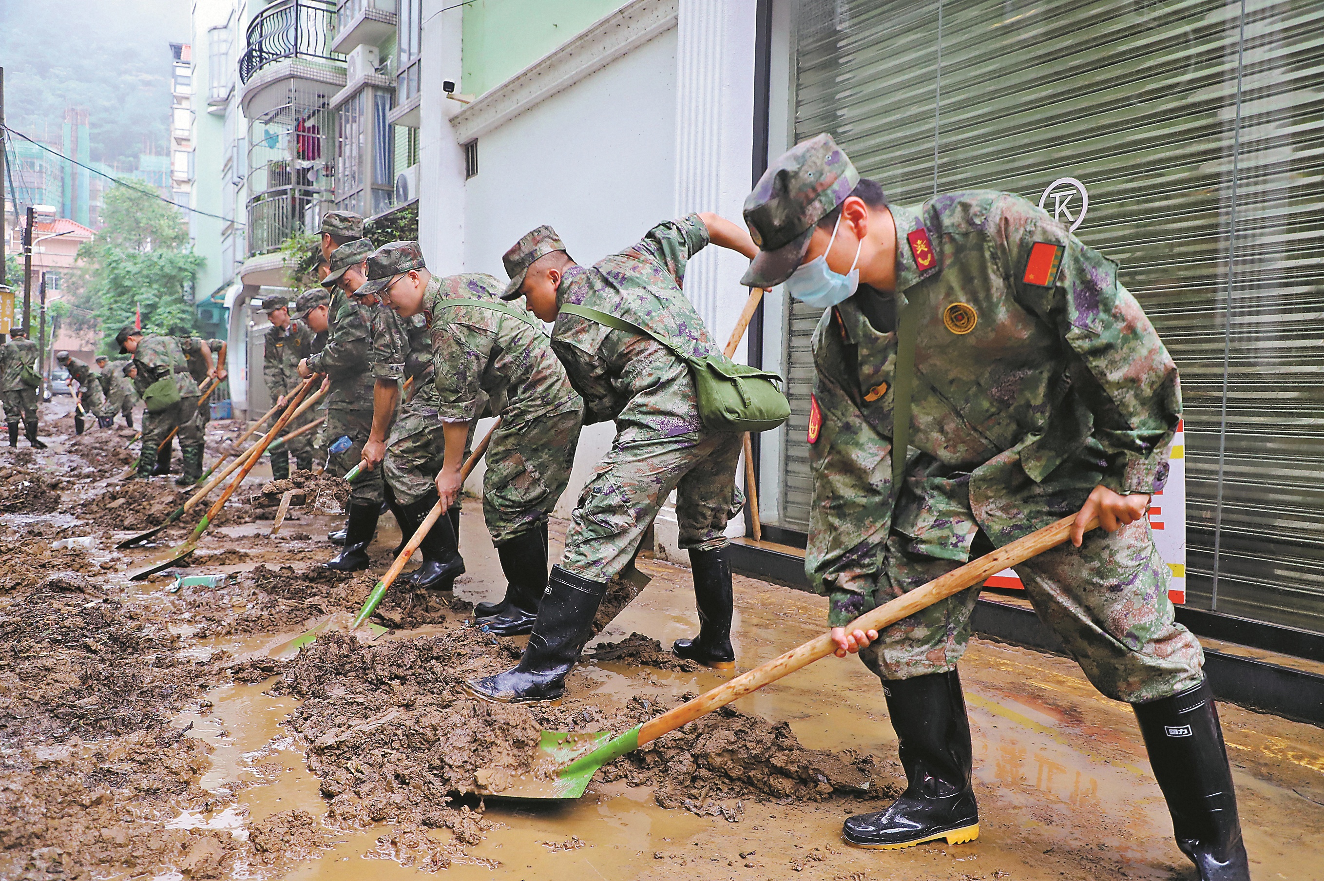 連日來,華南地區持續遭遇強降雨,廣東省惠州軍分區組織民兵參與搶險救災。