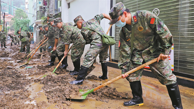駐廣東、海南部隊官兵和民兵持續奮戰 幫助受災群眾恢復生產生活秩序
