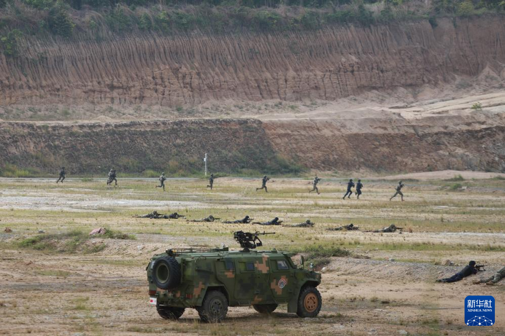 5月28日,在柬埔寨磅清揚(yáng)省王家軍憲兵訓(xùn)練中心的中柬“金龍-2025”聯(lián)演陸空方向?qū)嵄鴮?shí)彈演練現(xiàn)場(chǎng),中柬聯(lián)合任務(wù)部隊(duì)交替掩護(hù),向“恐怖分子”據(jù)點(diǎn)突入。新華社發(fā)(段江山攝)