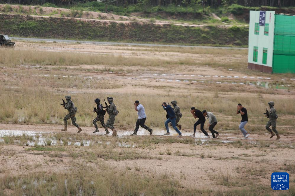 5月28日,在柬埔寨磅清揚(yáng)省王家軍憲兵訓(xùn)練中心的中柬“金龍-2025”聯(lián)演陸空方向?qū)嵄鴮?shí)彈演練現(xiàn)場(chǎng),中柬聯(lián)合任務(wù)部隊(duì)從“恐怖分子”手中解救被困“人質(zhì)”。新華社發(fā)(段江山攝)