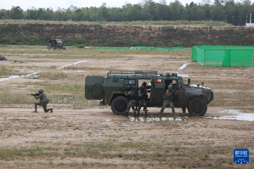 陸空方向?qū)嵄鴮?shí)彈演練以“恐怖分子”襲擊某中柬合資企業(yè),挾持“人質(zhì)”位街區(qū)酒店,依托周邊建筑群進(jìn)行抵抗為背景,突出城市反恐,聚焦解救人質(zhì)和圍殲清剿,采取場(chǎng)地位移、情況預(yù)置、連貫實(shí)施方式,區(qū)分聯(lián)合封控、突擊營(yíng)救、追逃捕殲、全面控局等4個(gè)階段,組織實(shí)施多維偵察、機(jī)降控守、立體突擊、營(yíng)救人質(zhì)、緊急救治、肅清殘敵等24個(gè)戰(zhàn)術(shù)行動(dòng)。演練編設(shè)聯(lián)合導(dǎo)演部、聯(lián)合指揮部,中柬參演部隊(duì)統(tǒng)一編成聯(lián)合任務(wù)部隊(duì)。