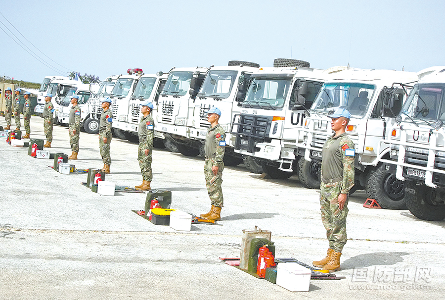 5月27日,中國(guó)第22批赴黎巴嫩維和建筑工兵分隊(duì)高標(biāo)準(zhǔn)通過(guò)聯(lián)合國(guó)裝備核查。圖為當(dāng)日分隊(duì)官兵列隊(duì)等待核查。莊小好 攝