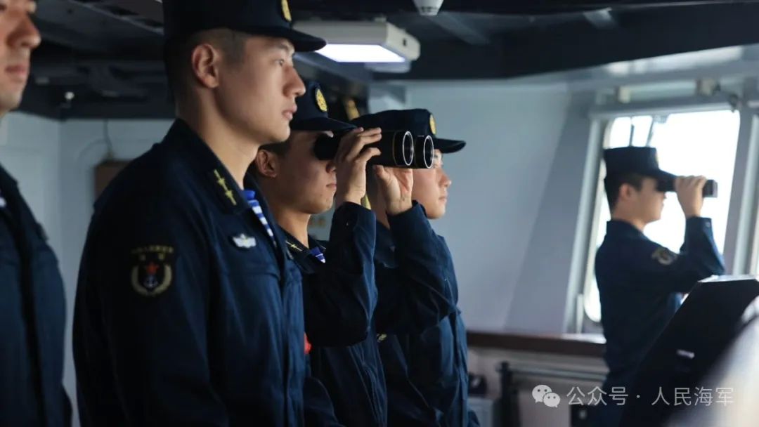 ▲中方艦艇編隊航渡期間,駕駛室人員值更。