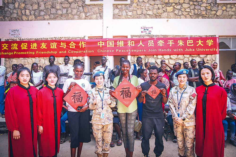 解放軍報朱巴1月26日電 張鑫報道:中國農歷新年前夕,我第11批赴南蘇丹維和步兵營官兵來到當地朱巴大學,開展文化交流活動。