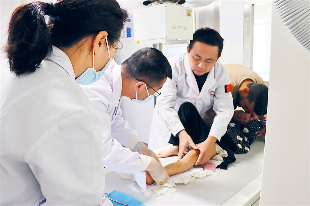 中國軍醫對小女孩進行診治。楊瑞鑫 攝