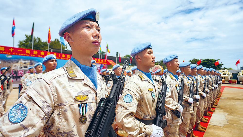 近日,聯合國駐南蘇丹特派團舉行授勛儀式,授予中國第11批赴南蘇丹(朱巴)維和步兵營全體官兵聯合國和平榮譽勛章,以表彰他們為維護南蘇丹和平穩定作出的貢獻。圖為授勛儀式現場。黎子陽攝