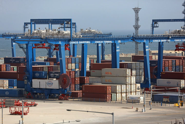 這是2025年10月7日拍攝的秘魯錢凱港碼頭擺放的集裝箱。位于秘魯首都利馬以北約80公里的錢凱港于2024年11月正式開港,標志著中秘共建“一帶一路”取得新的重要成果。新華社發(瑪麗安娜·巴索攝)