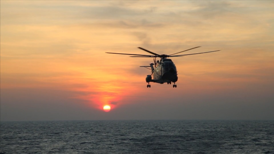 艦載直升機(jī)身披彩霞與落日同框 絕美!