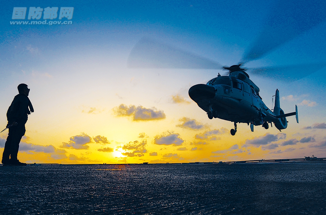 “建立著艦航線,調整姿態!”收到坐標信息,戰機迅速鎖定目標艦船。甲板上,保障人員早已就位。在信號員引導下,戰機建立下滑線,緩慢降低高度,減速飛行,找準時機果斷下降,穩穩降落在甲板上。短暫停留后,戰機再次升空,飛赴其他空域開展協同反潛、搜救等訓練。
