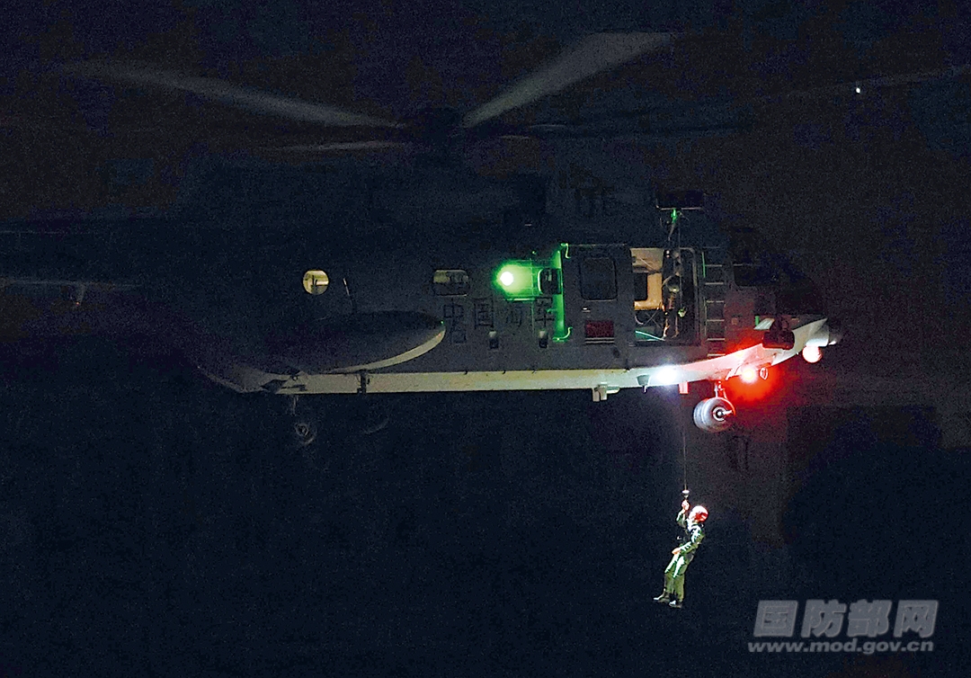 夜色如墨,機場上空轟鳴陣陣。“正前方10米……5米……”直升機搜救訓練正在緊張進行。機長緊握駕駛桿緩慢調整戰機姿態,平穩懸停。機組成員默契配合,絞車手放下鋼索,搜救員克服下旋氣流影響,攜帶救護裝具快速出艙,下降到指定位置后,牢牢固定住目標,隨即右手做出上升手勢,順利返回機艙。