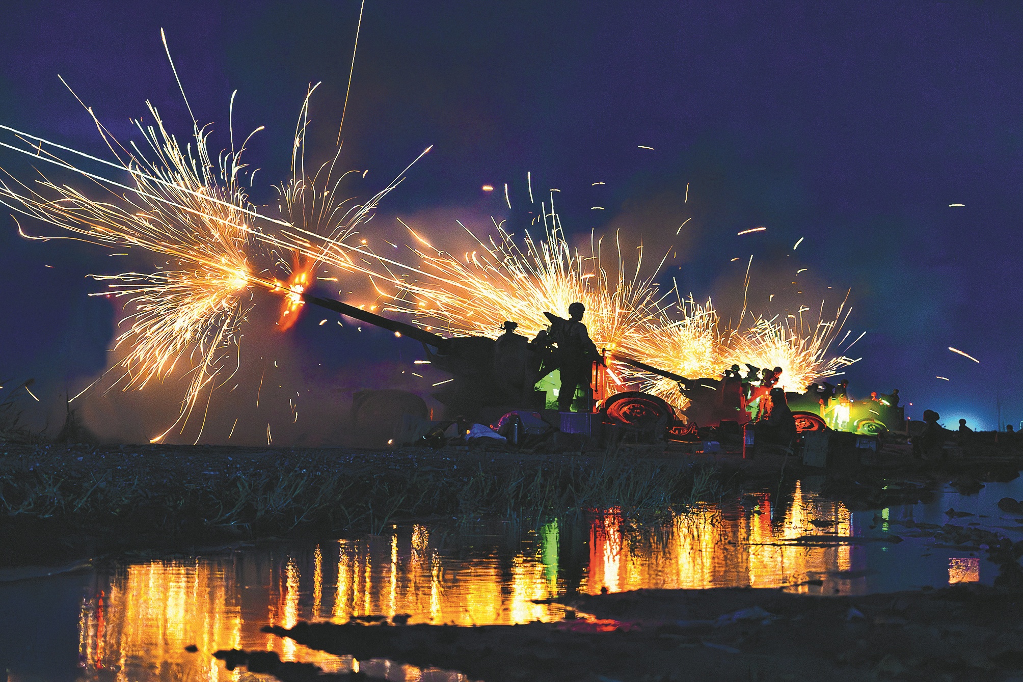 與此同時,部署在陣地前沿的高炮分隊嚴陣以待。“發射!”指揮員話音剛落,一枚枚炮彈破膛而出,在天地間織出一張火力覆蓋網,成功摧毀目標。