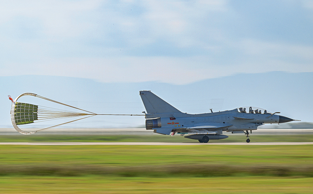 秋日,空軍航空兵某旅組織飛行訓練。圖為戰機著陸滑行。靳航宇攝