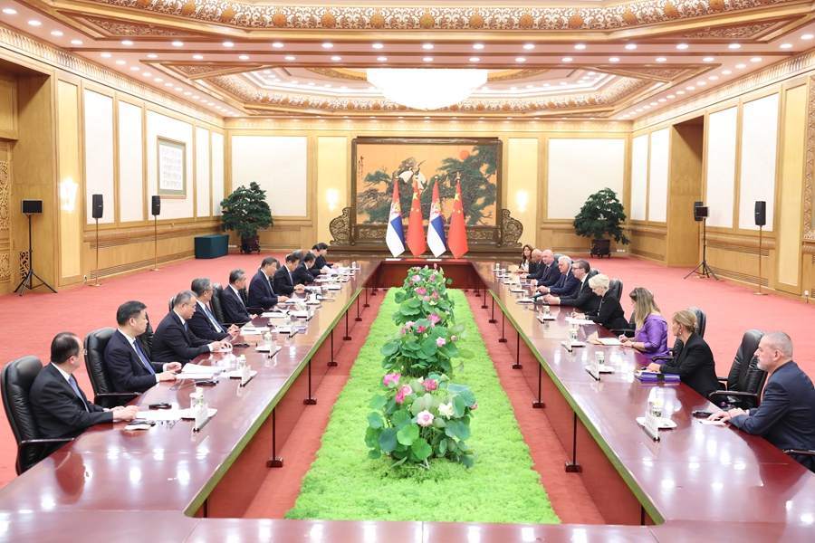 9月4日下午,國家主席習近平在北京人民大會堂會見來華出席紀念中國人民抗日戰爭暨世界反法西斯戰爭勝利80周年活動的塞爾維亞總統武契奇。