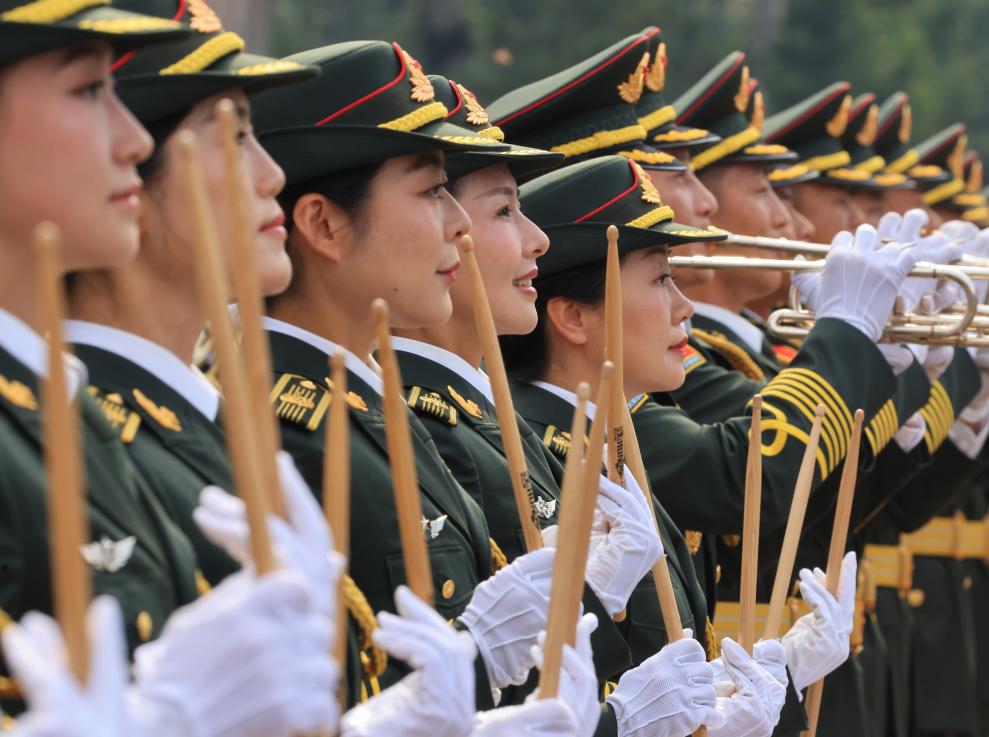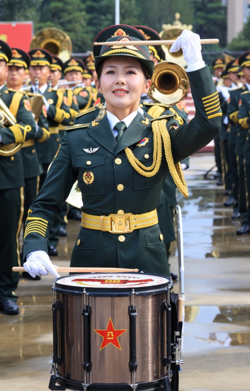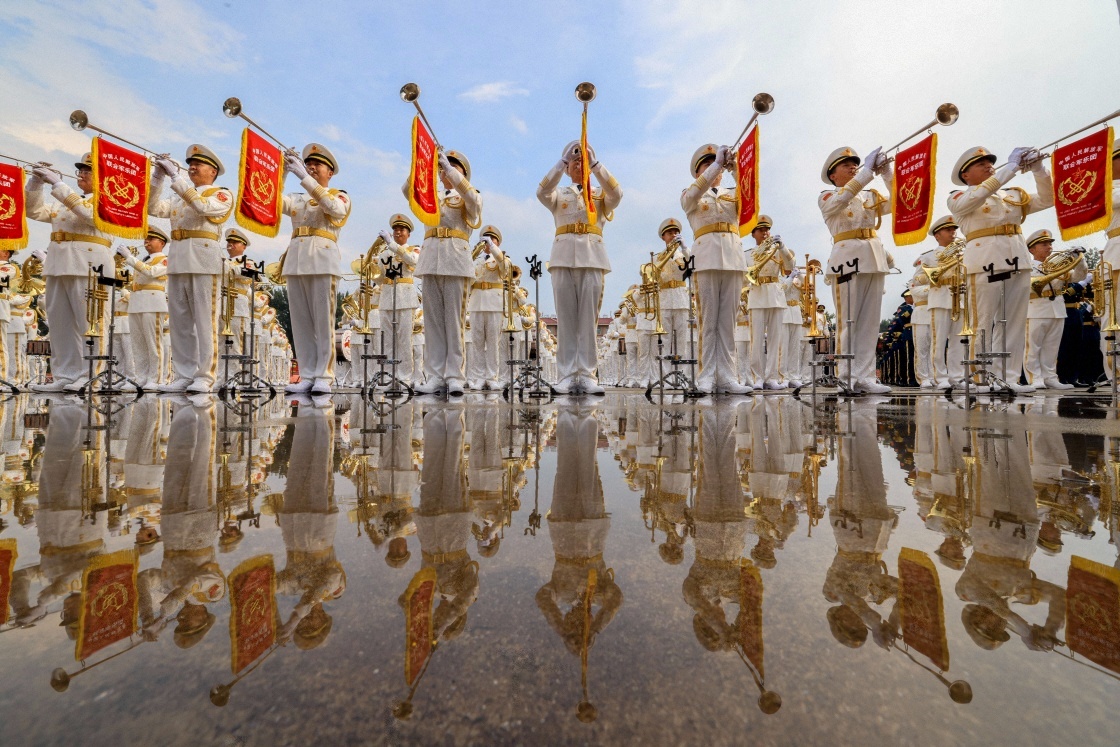 中國人民解放軍聯(lián)合軍樂團在進行訓練(8月12日攝)。新華社記者 張鋮 攝