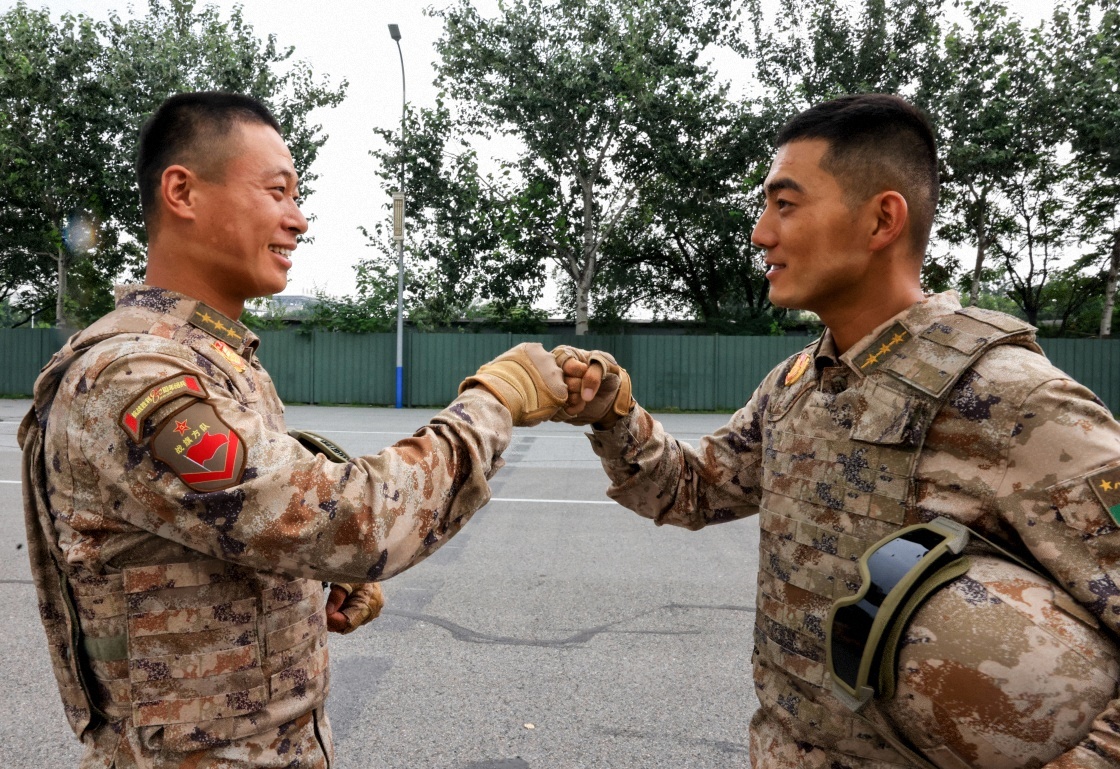 參閱隊員相互鼓勁(8月12日攝)。新華社記者 殷剛 攝