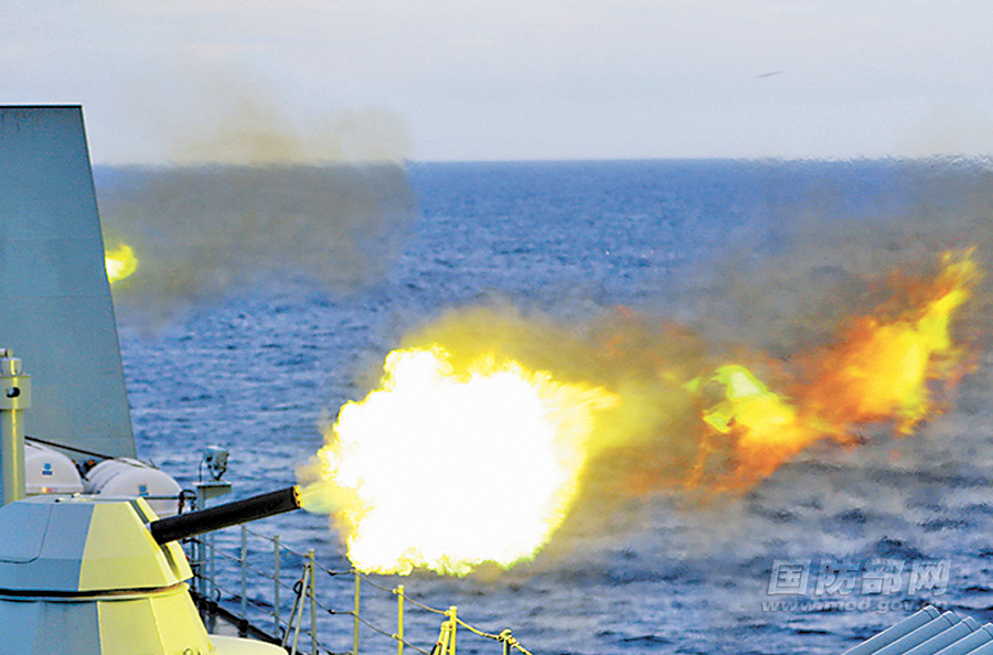 某艦作戰指揮室內,鍵盤聲聲,屏幕閃爍。在緊張的戰斗氛圍中,艦艇快速占領攻擊陣位。目標進入副炮射程后,指揮員把握戰機下達開火命令。炮聲隆隆,一發發炮彈破膛而出,直撲海上目標。