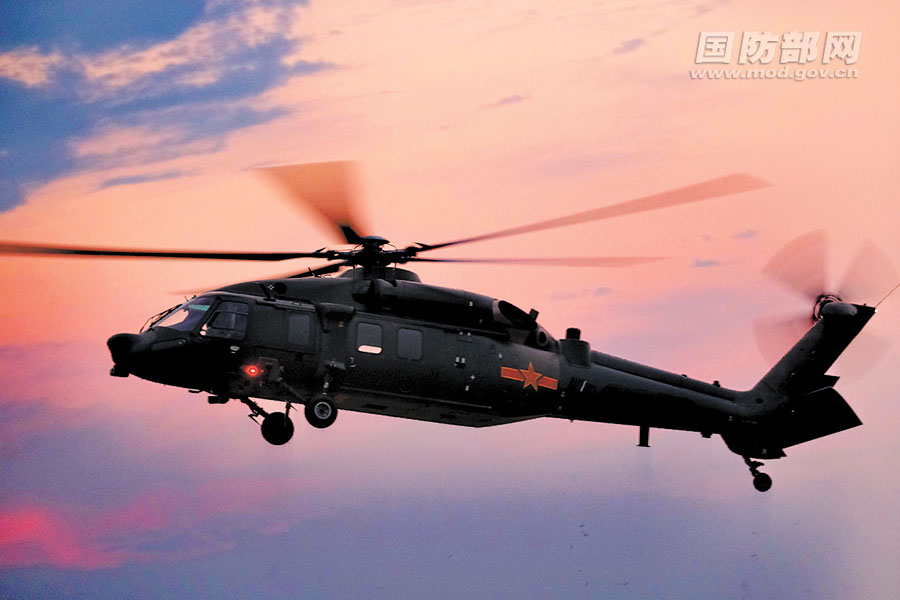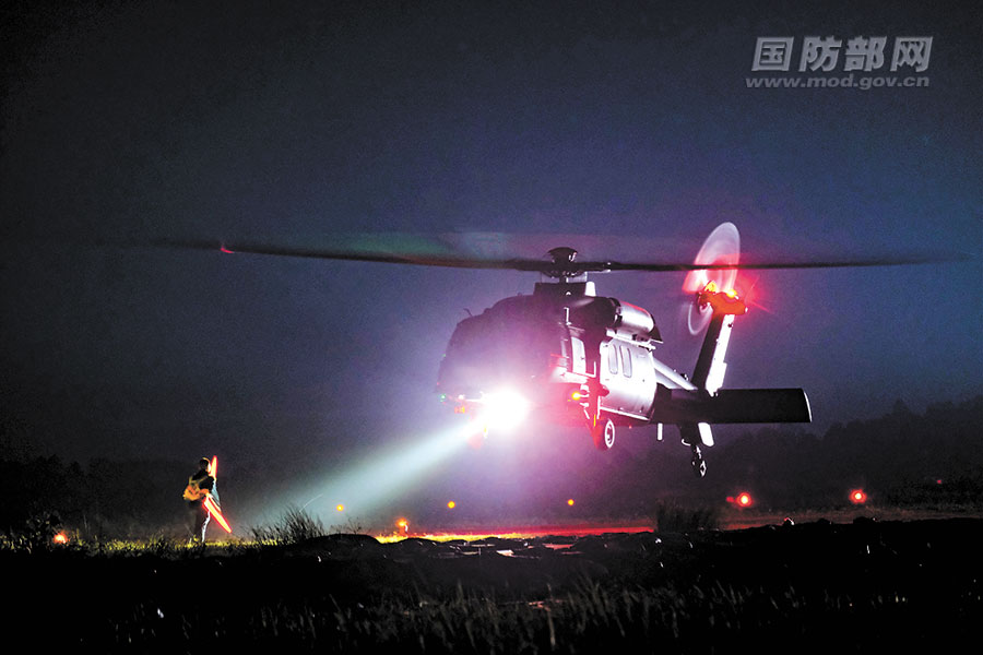 空中通道開辟后,突擊編隊展開空中投送訓練。在武裝直升機掩護下,編隊根據地形特點,采取空中懸停和著陸機降相結合的方式,對目標地域進行物資投送。