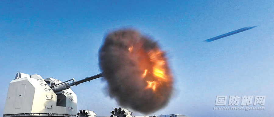 鏖戰剛過,海上又傳來“敵情”。“敵”艦悄然出動,伺機發起偷襲。編隊各艦快速反應、密切協同。很快,官兵綜合運用雷達、光電設備成功鎖定目標。指揮員下達打擊命令,剎那間艦炮轟鳴、火舌噴吐,目標被成功摧毀。