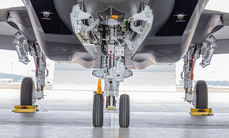 起落架通常由承力支柱、減震器、機(jī)械傳動(dòng)機(jī)構(gòu)、機(jī)輪和剎車系統(tǒng)、轉(zhuǎn)彎系統(tǒng)等組成,體積不大卻包含了上千個(gè)零部件。承力支柱將機(jī)輪和減震器連接在機(jī)體上,戰(zhàn)斗機(jī)著陸接地瞬間,機(jī)輪可以起到緩沖作用,大部分撞擊能量會(huì)被減震器吸收,從而減少?zèng)_擊和震動(dòng)載荷。