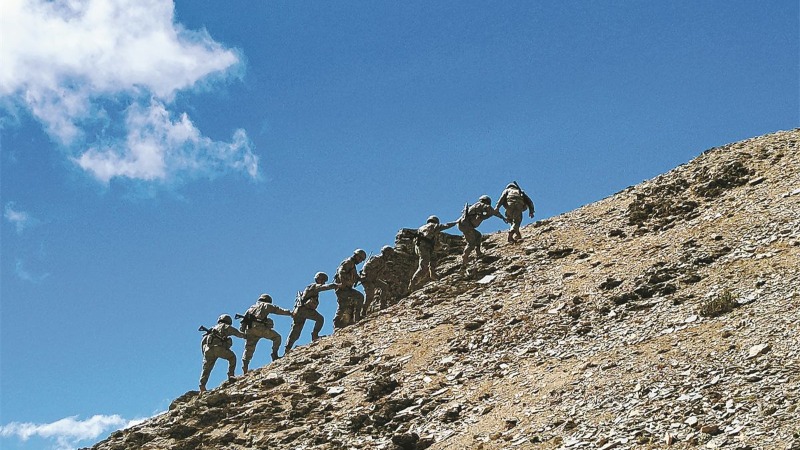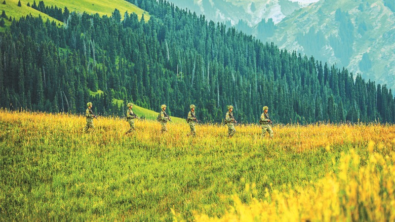 陸軍某部某邊防連官兵執(zhí)行巡邏任務(wù)