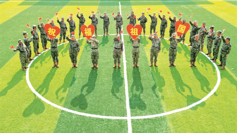 江蘇省濱海縣人武部專武干部和民兵為祖國慶生