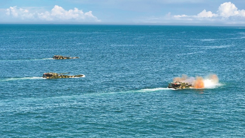海軍某部與陸軍某旅聯(lián)合開展海上裝卸載訓(xùn)練