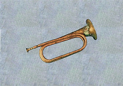 志愿軍“二級戰斗英雄”鄭起使用過的軍號。中國人民革命軍事博物館供圖