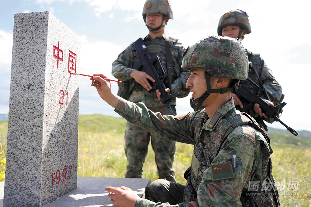 官兵為界碑描紅。