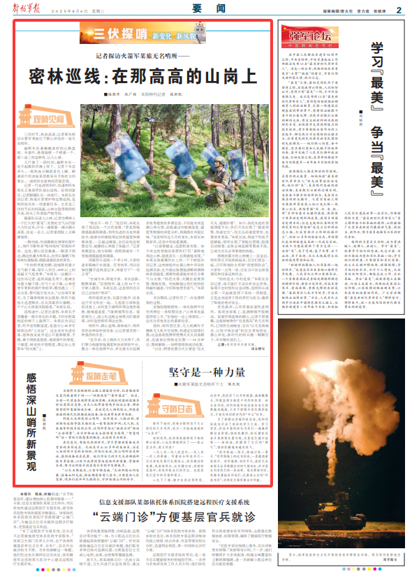 夜色漸深,山風(fēng)帶著涼意吹進(jìn)哨所。值班室屏幕上,監(jiān)測(cè)數(shù)據(jù)平穩(wěn)跳動(dòng)。望著四周連綿的群山,記者不禁感慨,這座曾被稱(chēng)作“信息孤島”的無(wú)名哨所,已悄然完成蛻變,官兵“以無(wú)名鑄威名、以堅(jiān)守鑄忠誠(chéng)”的信念更加堅(jiān)定。群山深處,新時(shí)代的哨兵像一顆顆釘子,牢牢鉚在戰(zhàn)位上。