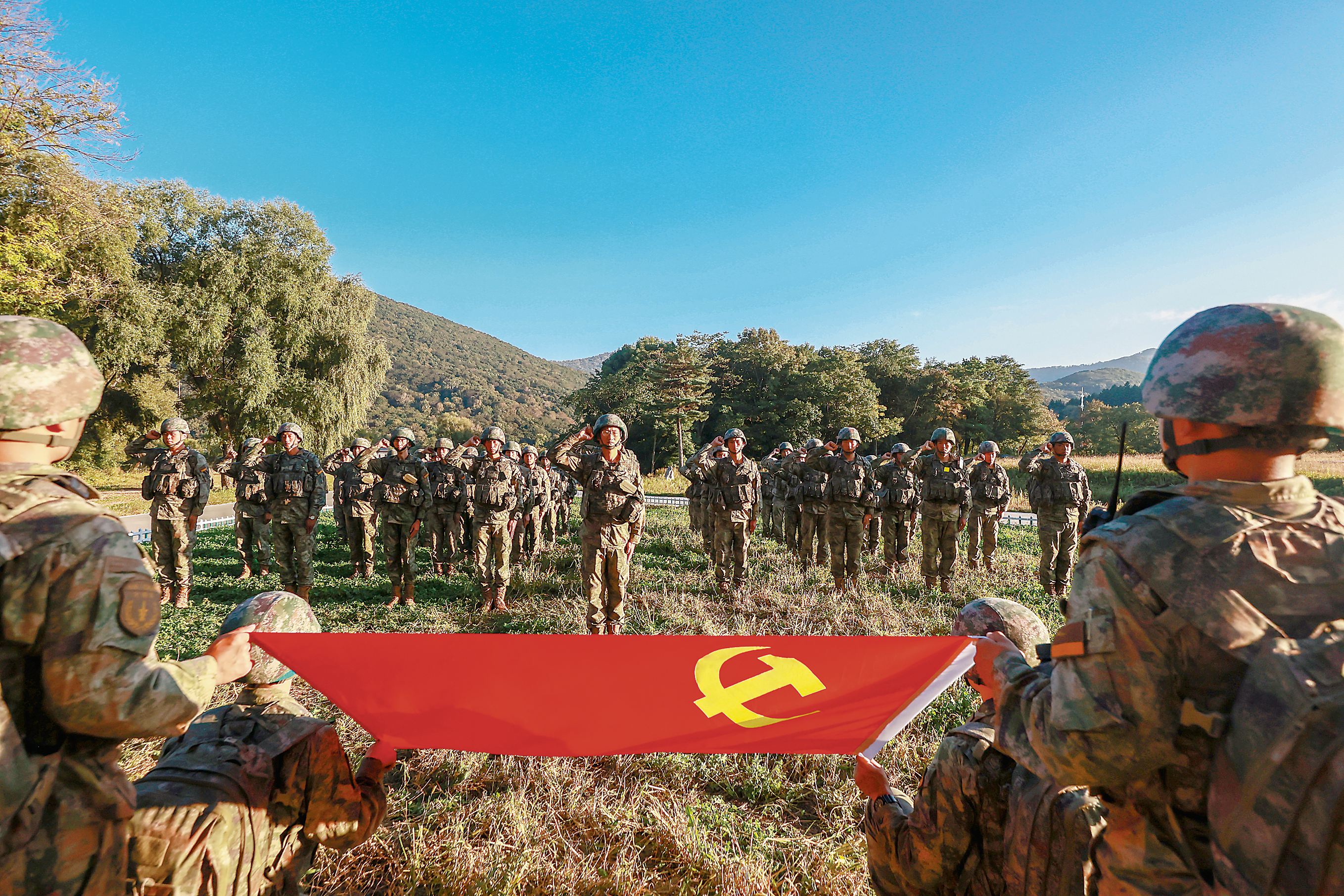 該旅在訓練間隙組織官兵向黨旗宣誓,激勵官兵以昂揚斗志投身練兵備戰。馮義橋 攝