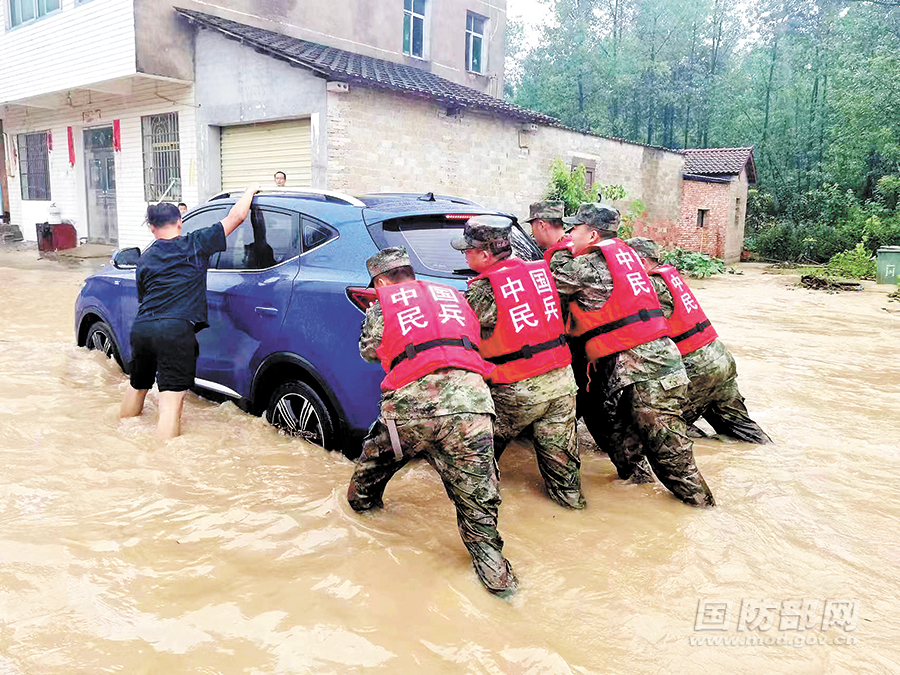 6月22日,咸寧軍分區組織民兵轉移被困車輛。崔建華攝