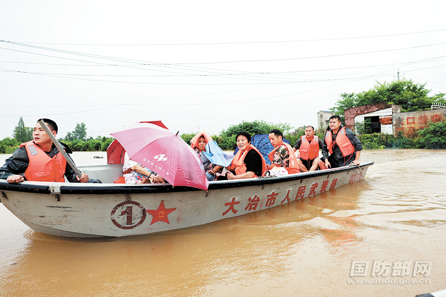 6月23日,湖北省大冶市人武部組織民兵轉移群眾。粟 毅攝
