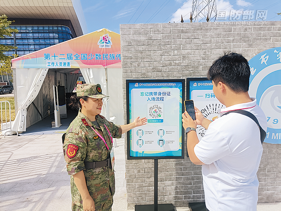 民兵為觀眾講解入場(chǎng)流程。王明博攝
