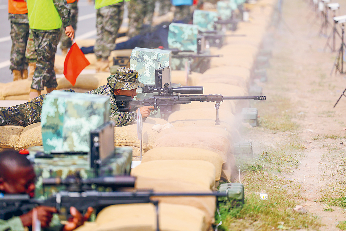武警“雪豹突擊隊”參賽隊員與各國參賽狙擊手同臺競技。侯崇慧攝