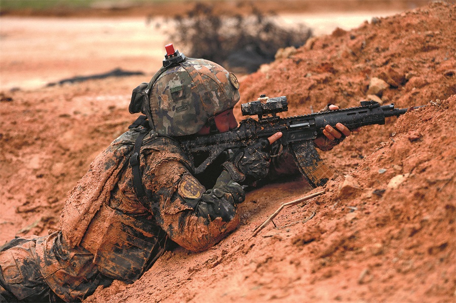 武警第二機動總隊組織戰斗檢驗。圖為某中隊二級上士萬志雄依托有利地形組織反擊。白孝楠攝