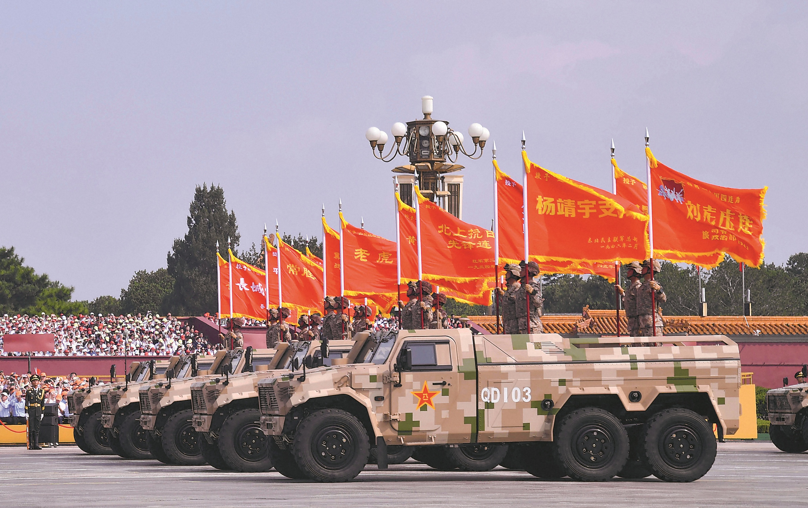 紀(jì)念中國(guó)人民抗日戰(zhàn)爭(zhēng)暨世界反法西斯戰(zhàn)爭(zhēng)勝利80周年閱兵式上,戰(zhàn)旗方隊(duì)氣勢(shì)如虹。“劉老莊連”戰(zhàn)旗在其中迎風(fēng)飄揚(yáng),接受黨和人民檢閱。解放軍報(bào)記者 張雷 攝