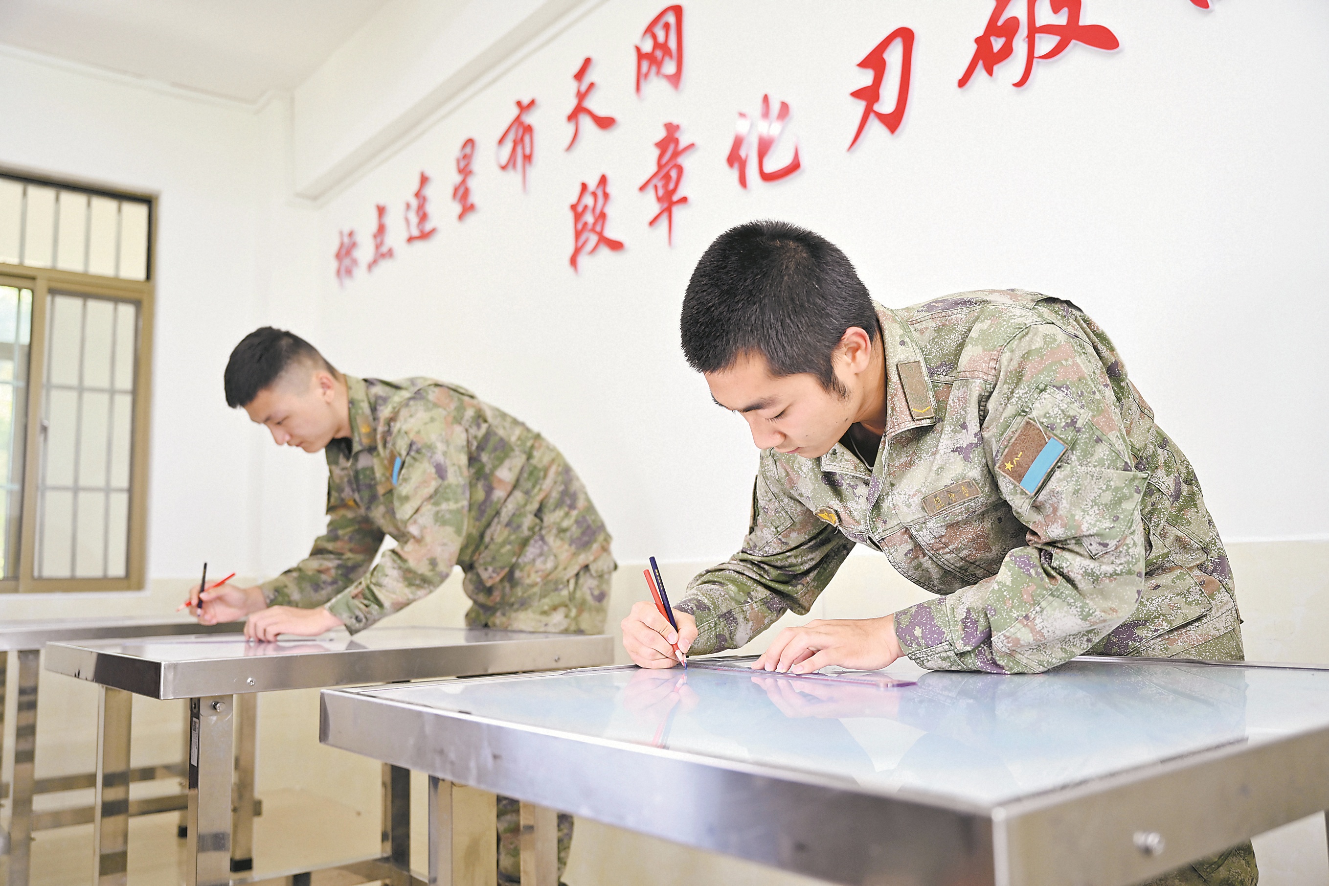 南部戰區空軍某雷達站官兵正在進行標圖訓練。