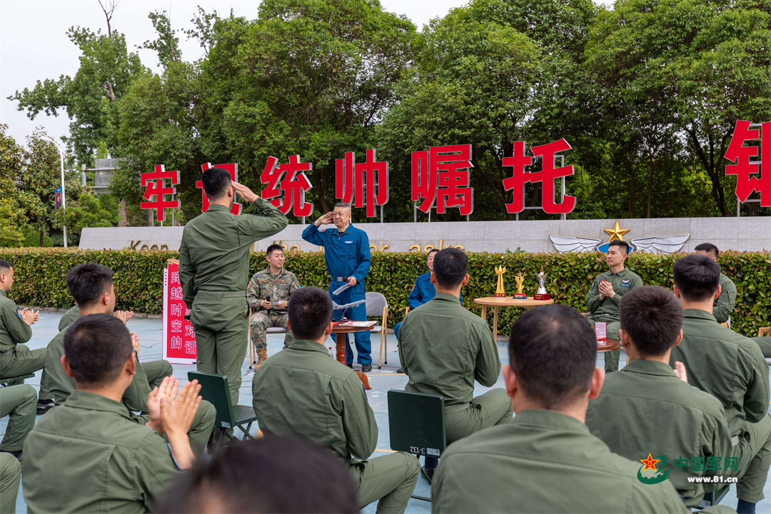 航空兵某團開展“跨越時空的青春對話”教育活動,邀請2位老飛行員回營參加。活動現場,年輕飛行員向老前輩提問、致敬。龍小康 攝