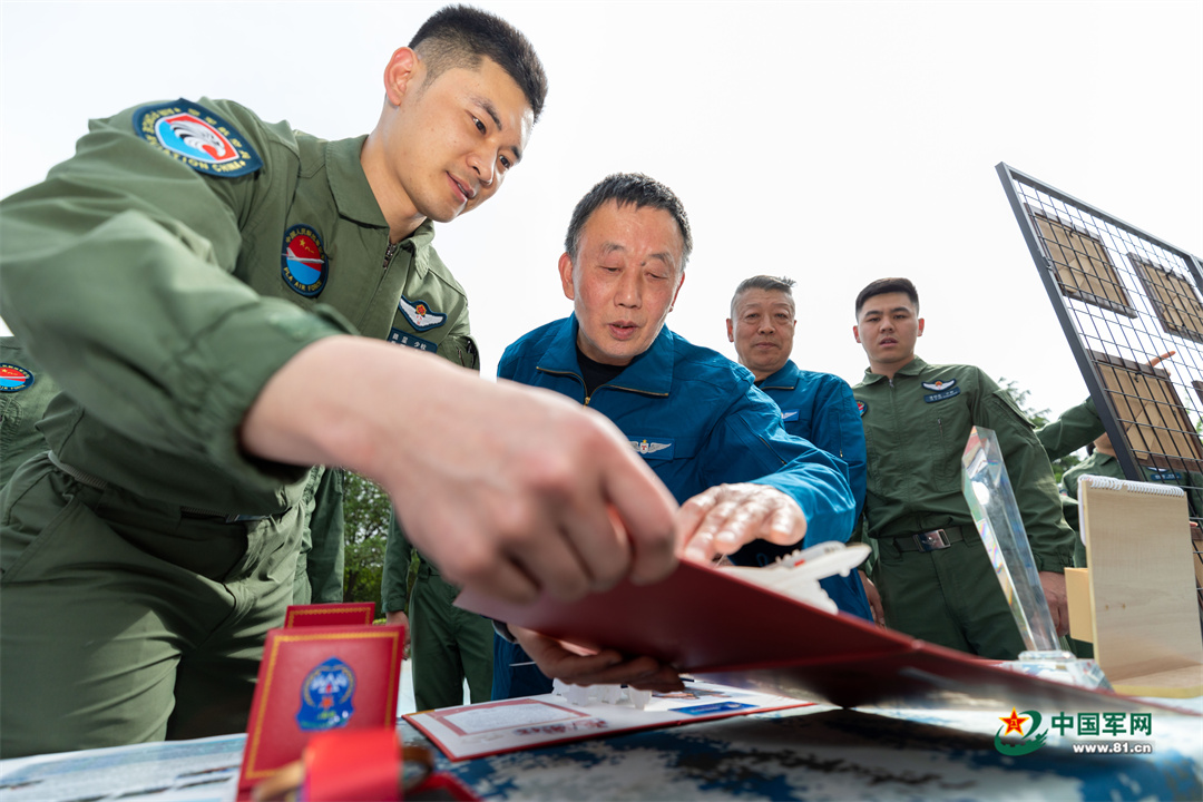 航空兵某團開展“跨越時空的青春對話”教育活動,邀請2位老飛行員回營參加?;顒蝇F場,新老飛行員進行互動交流。龍小康 攝