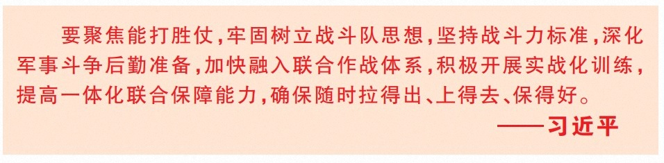 保障好部隊,還須強自身。“要聚焦能打勝仗,牢固樹立戰(zhàn)斗隊思想,堅持戰(zhàn)斗力標(biāo)準(zhǔn),深化軍事斗爭后勤準(zhǔn)備,加快融入聯(lián)合作戰(zhàn)體系,積極開展實戰(zhàn)化訓(xùn)練,提高一體化聯(lián)合保障能力,確保隨時拉得出、上得去、保得好。”認(rèn)真學(xué)習(xí)領(lǐng)會習(xí)主席重要指示精神,該中心近年來緊密結(jié)合單位和任務(wù)實際,蹚出一條訓(xùn)練新路。
