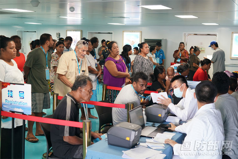 “和平方舟”號(hào)醫(yī)院船為基里巴斯民眾提供醫(yī)療服務(wù)。徐小龍 攝