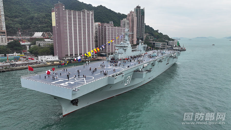吳謙:根據年度計劃安排,11月21日至25日,由海軍海南艦和長沙艦組成的艦艇編隊訪問香港,期間面向香港同胞組織甲板招待會、艦艇開放參觀、國防知識講座、文化交流等系列開放活動。全國政協副主席梁振英、香港特別行政區行政長官李家超、澳門特別行政區政府有關代表等300余人應邀出席海南艦舉行的甲板招待會。11月22日至24日,海南艦和長沙艦分別組織開放,港澳市民、青少年學生、港澳官方機構代表等群體共約15000人登艦參觀,反響熱烈。此外,約700名青少年學生參加了國防知識講座,進一步了解人民海軍建設發展的成就。
