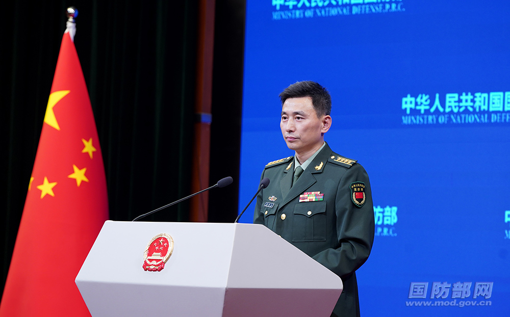 10月30日下午,國防部舉行例行記者會,國防部新聞發言人張曉剛大校答記者問。張智程 攝
