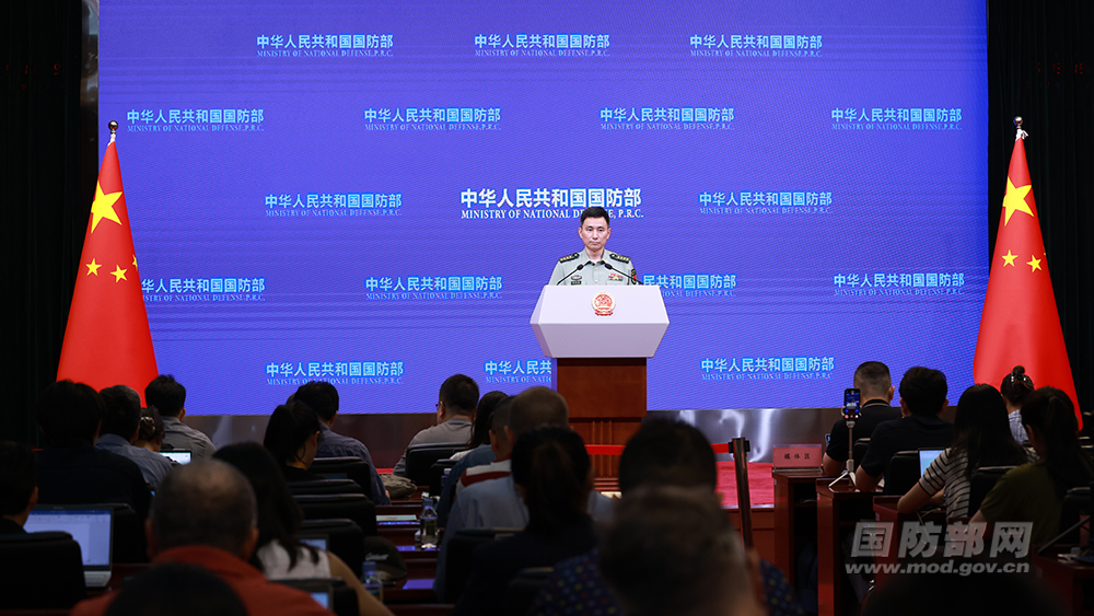 8月28日下午,國防部舉行例行記者會,國防部新聞發言人張曉剛大校答記者問。 張智程 攝