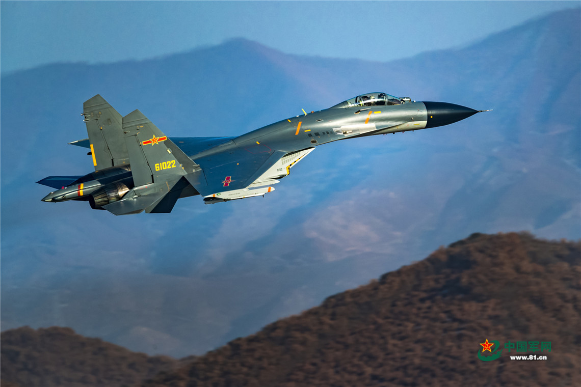 傍晚,陽光勾勒出戰機硬朗的曲線。楊盼 攝