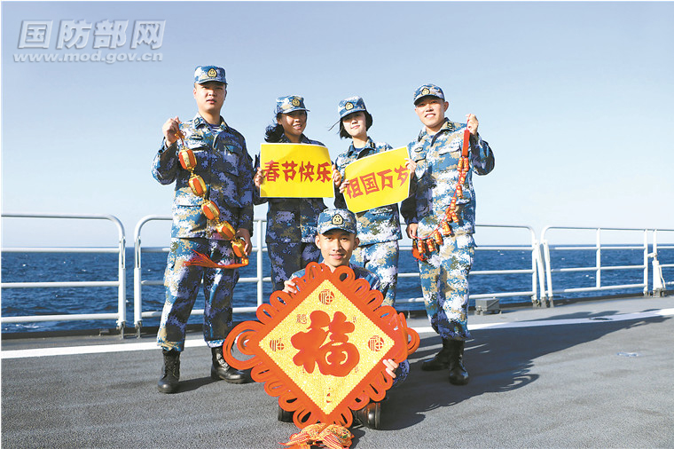 我海軍第31批護航編隊昆侖山艦官兵,在亞丁灣向祖國和人民致以新春祝福。