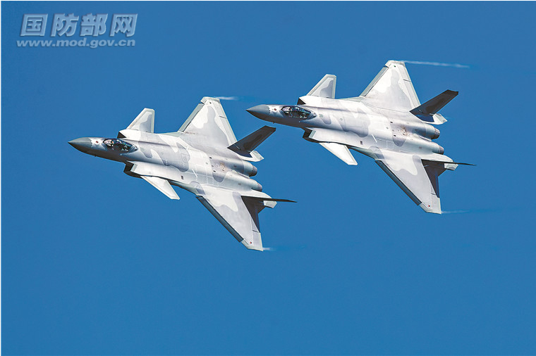 在慶祝中國人民解放軍建軍90周年閱兵式上亮相的殲-20,以嶄新的涂裝展開編隊訓練。宋奎攝