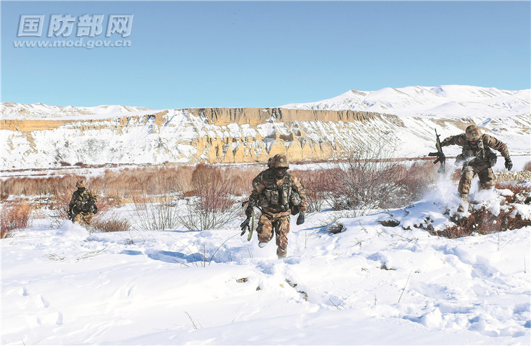 “全班注意,一組中,二組左,三組右,前方10米處占領進攻出發(fā)陣地……”2月18日,駐守在喜馬拉雅山脈腹地的陸軍某邊防團官兵踏著皚皚白雪,迎著刺骨寒風,在茫茫雪野展開戰(zhàn)術、體能等課目訓練。