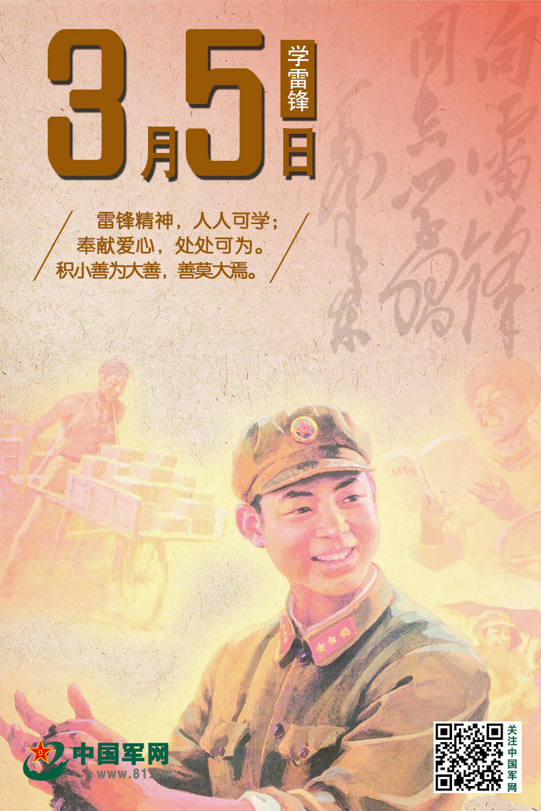 對雷鋒生前所在部隊官兵,習主席殷殷囑托:雷鋒精神是永恒的,是社會主義核心價值觀的生動體現。我們要從娃娃抓起,讓雷鋒精神在全社會蔚然成風,世世代代弘揚下去。